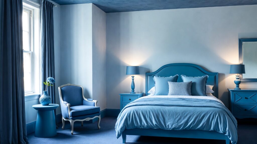 The foundation of your design starts with choosing the right shade. Light blues like powder or sky blue make a room feel airy and spacious. Medium blues create balance and warmth. Deep navy or midnight blue adds drama and sophistication. Always consider your room size and natural light before finalizing the tone.
