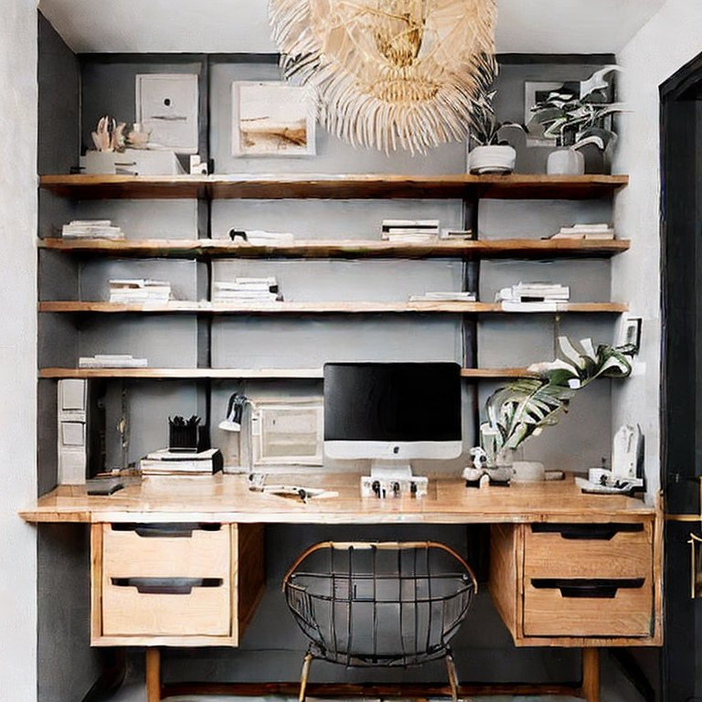 Keep clutter at bay with smart storage solutions. Open shelves, woven baskets, and minimal cabinets will help organize your files and office supplies. Stick to natural materials like rattan or bamboo for storage that looks stylish and organic.
