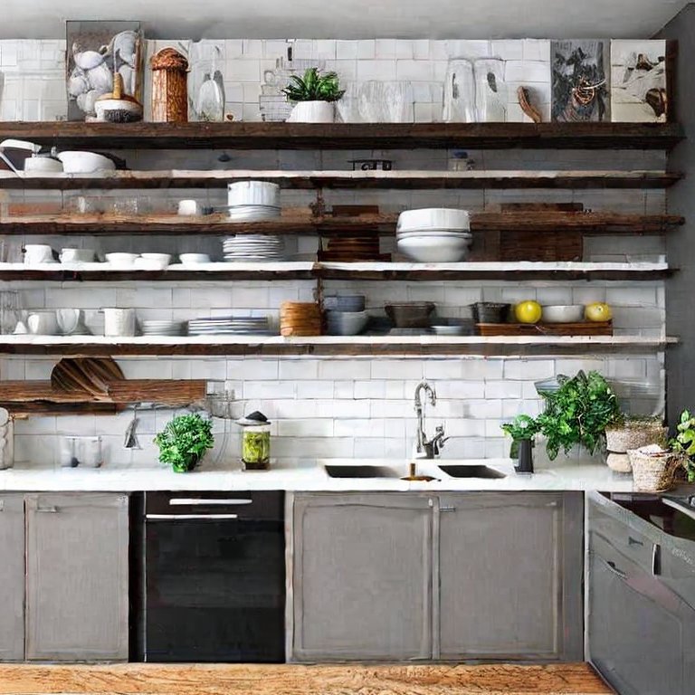Open shelving adds both practicality and style to your kitchen. Instead of hiding away your favorite dishware, mugs, or glassware, display them on open shelves for easy access and a touch of personality. Add small plants, woven baskets, or vintage jars to balance functionality with charm. This design choice also makes a small kitchen feel more open and airy.
