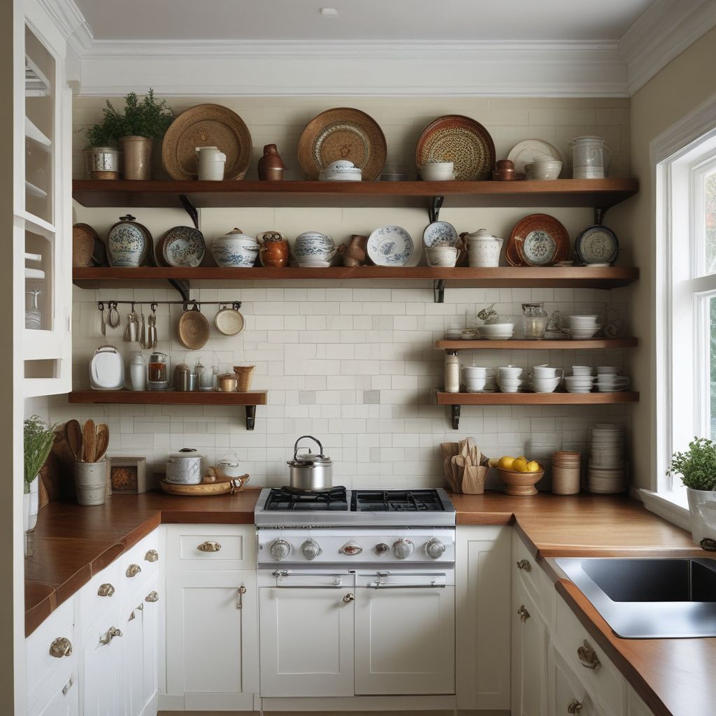 Instead of blank wall space or solid cabinetry, install open floating shelves to combine storage with decorative flair. These shelves allow you to showcase not just plates and glasses but beautiful items that reflect your personality.