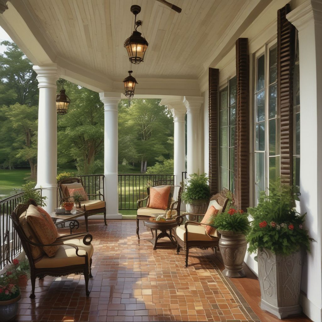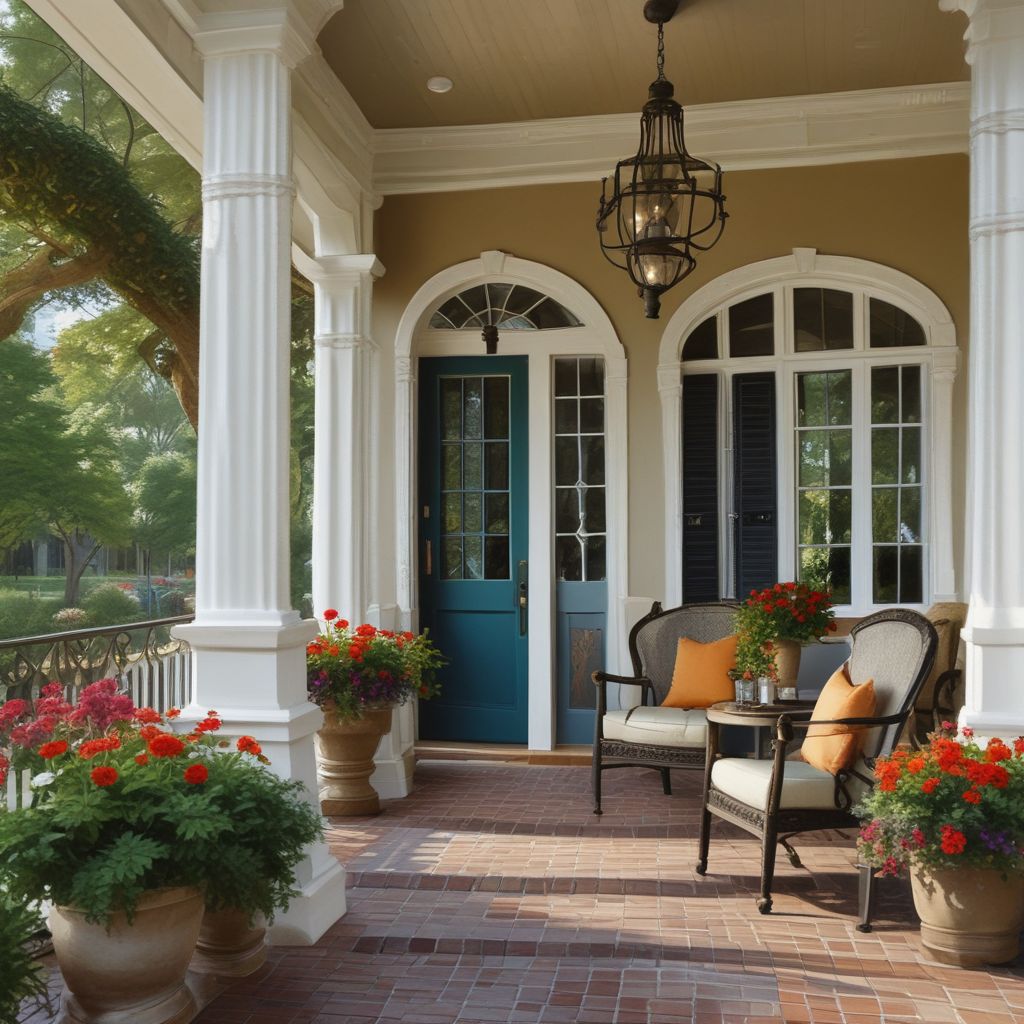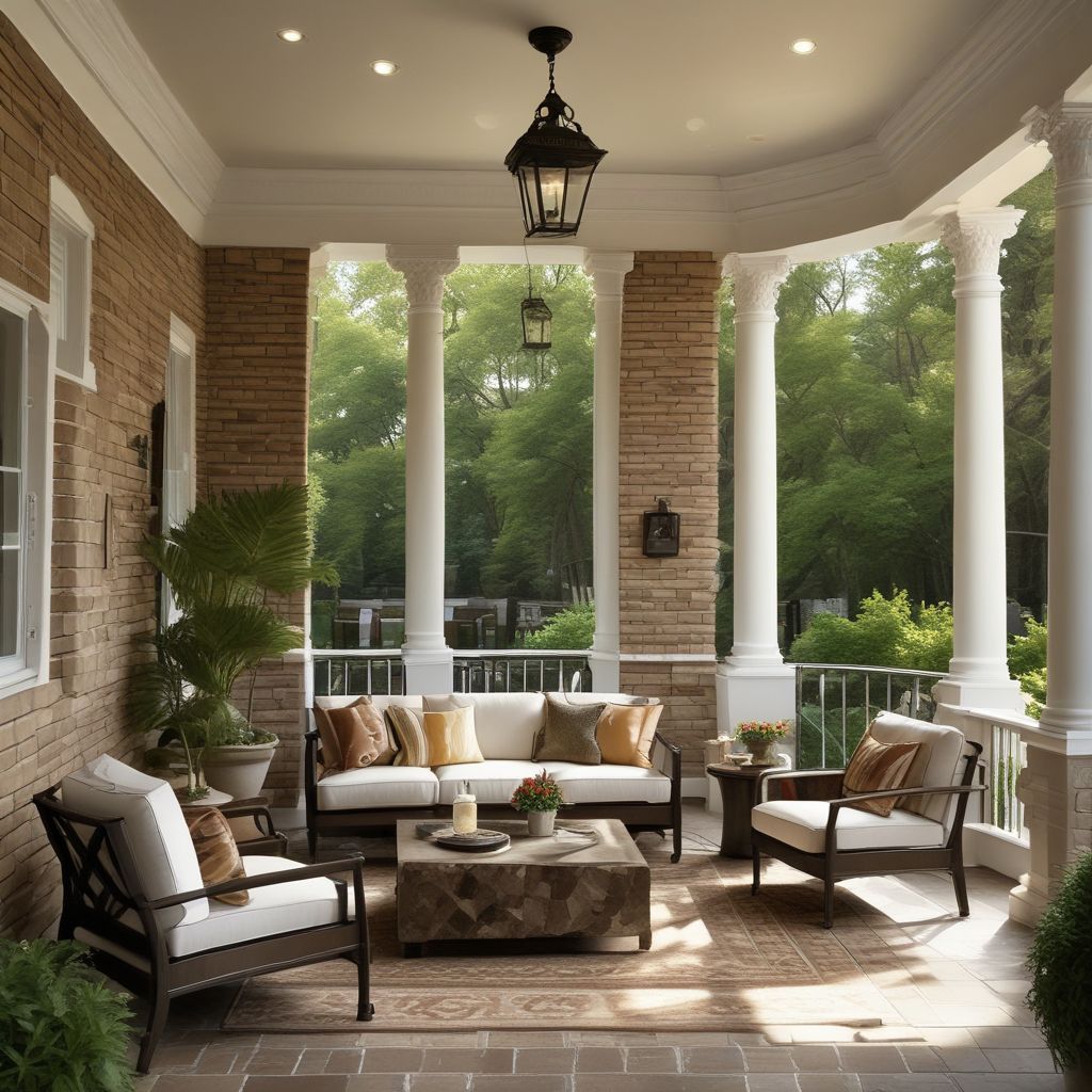 Start with comfortable furniture. A cozy bench, rocking chairs, or even a hanging swing can turn your porch into a relaxing lounge. Opt for weather-resistant cushions and throw pillows in patterns that complement your home’s exterior. Wicker, wood, or wrought iron furniture styles work well with most porch aesthetics.