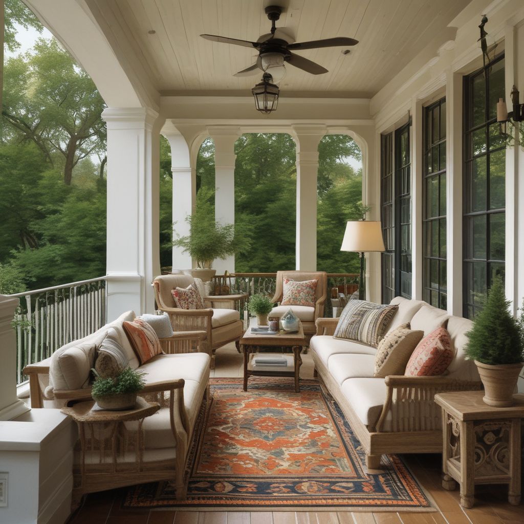 An outdoor rug adds warmth, color, and definition to your porch. Choose a rug that’s weatherproof, UV-resistant, and easy to clean. You can use bold patterns to make a statement or neutral tones for a classic, calming vibe. Rugs also help visually anchor your seating area.