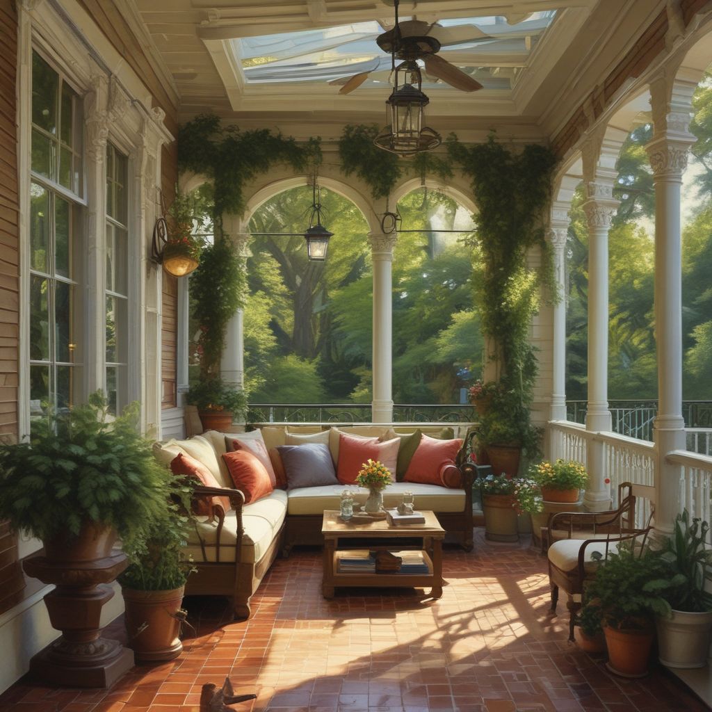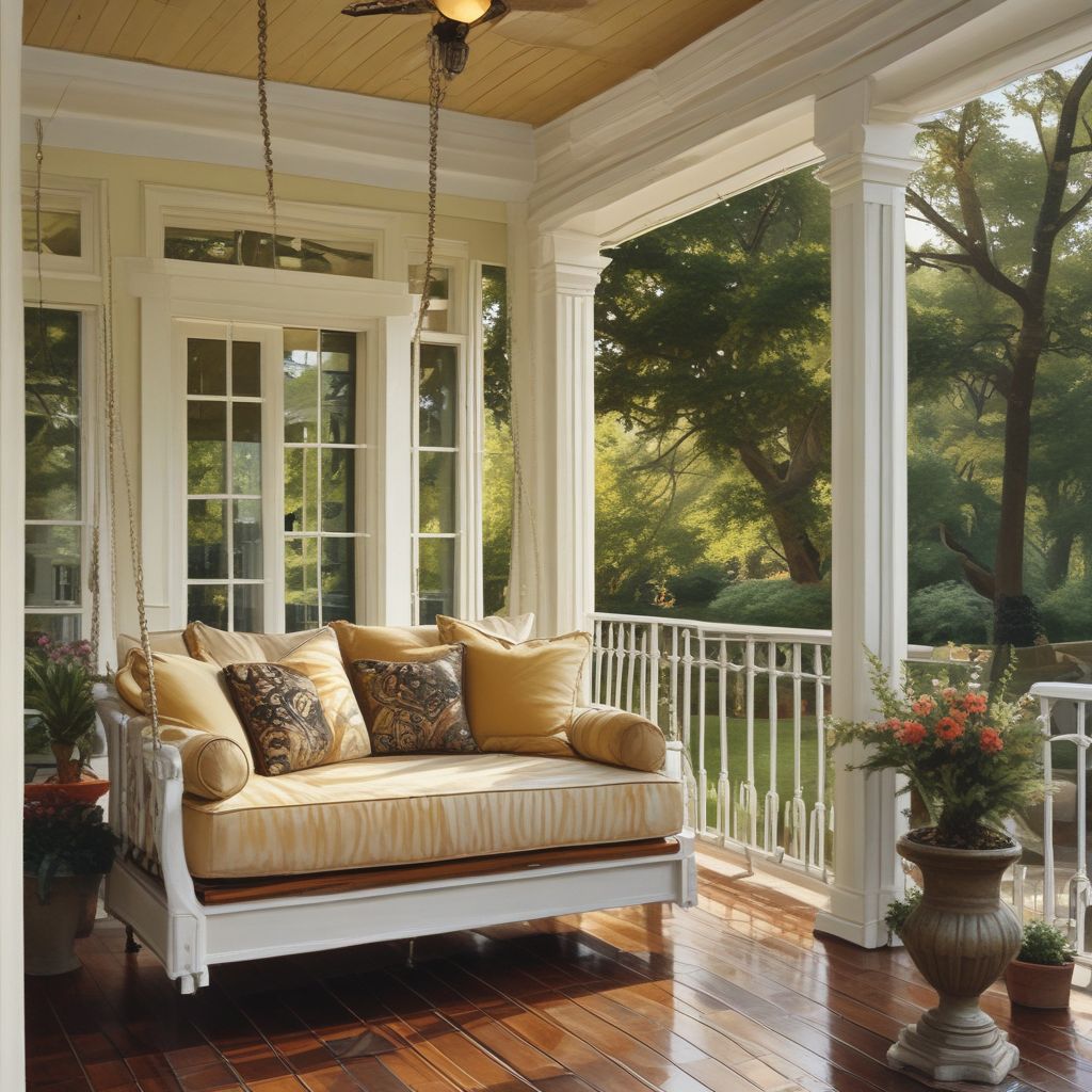 If your porch is large enough, a swing or daybed makes a stunning centerpiece. It not only offers a relaxing spot to lounge but also adds a bit of southern charm. Style it with cozy cushions, layered throws, and accent pillows for a luxurious outdoor feel.