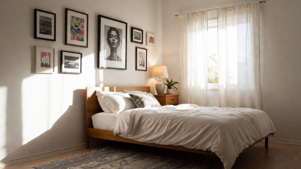 Place a large mirror on one wall or position it opposite a window to maximize natural light. Decorative mirrors can also become stylish focal points in your bedroom.