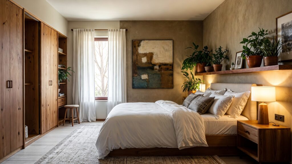 For example, a wooden bed frame, a woven basket, or a jute rug can add texture and visual interest to the room. These natural details prevent the space from feeling too empty or cold.