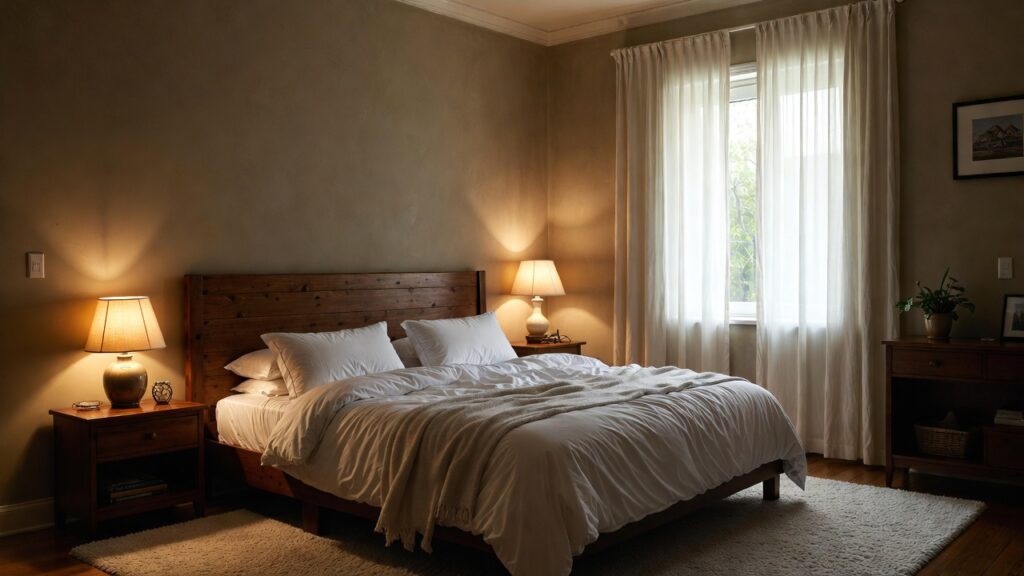 While natural light is important during the day, soft lighting creates a cozy atmosphere at night. Warm lighting helps the bedroom feel relaxing and comfortable.