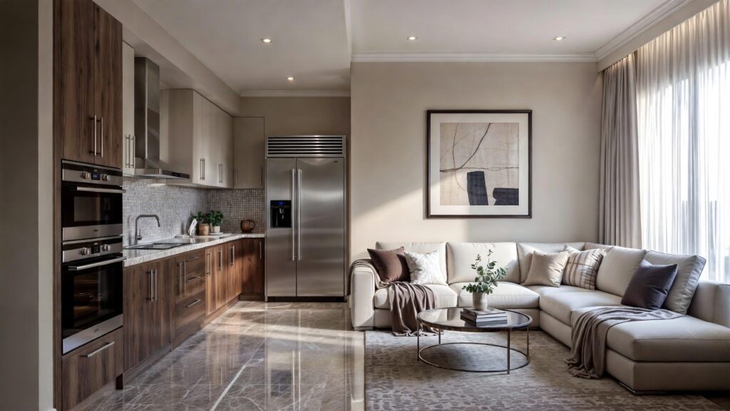 You can add subtle pops of color through cushions or plants while keeping the base neutral.