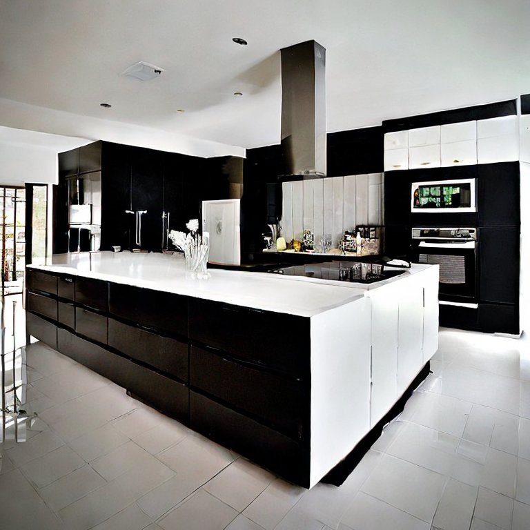 In the kitchen, matte black cabinetry paired with bright white countertops creates a luxurious, modern vibe. Add stainless steel hardware or brass fixtures for a touch of warmth. Open shelving with white dishware can lighten the look and keep the space feeling airy.