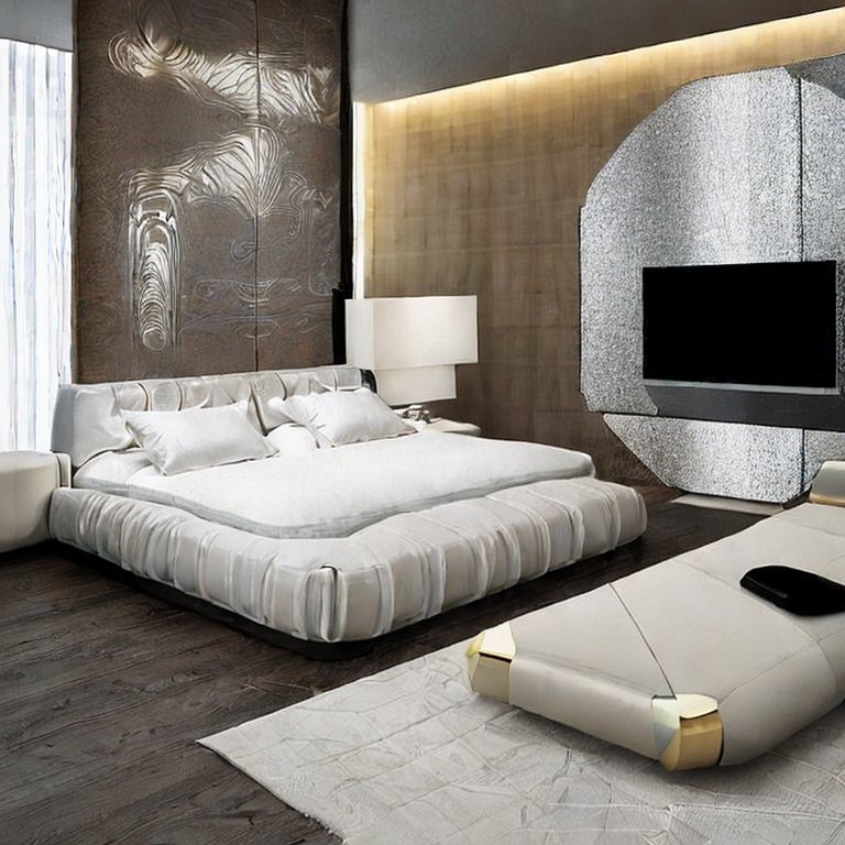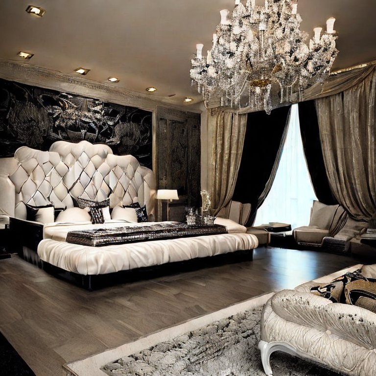 While hardwood or marble floors are classic, area rugs are essential for warmth and texture. A handwoven Persian rug, shaggy faux fur, or a geometric patterned carpet under the bed adds softness underfoot and pulls the design together.