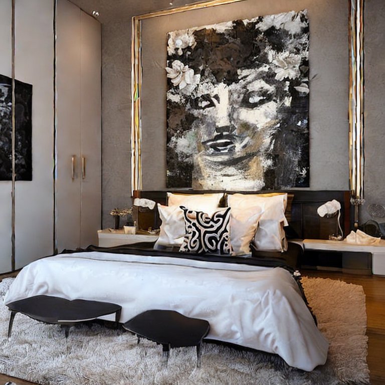A luxurious bedroom should reflect personality. Invest in statement artwork, sculptures, or custom-made wall décor. Oversized paintings, metallic wall art, or minimalist black-and-white photography elevate the room’s character.
