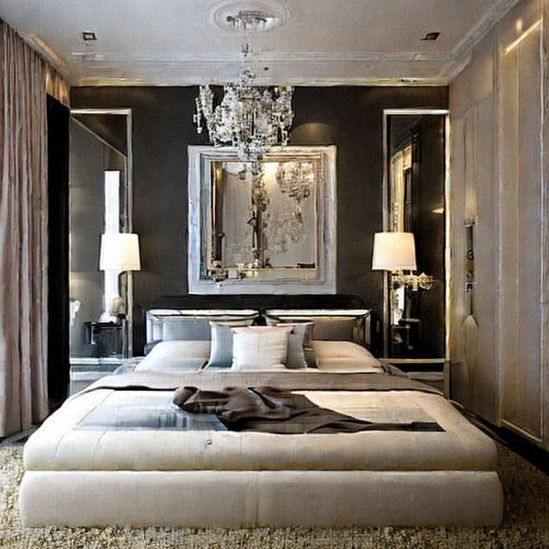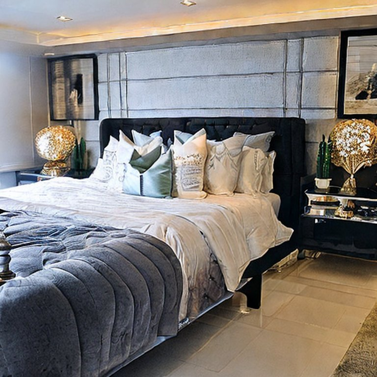 - Sleek bedside tables with metallic or mirrored finishes add glamour.