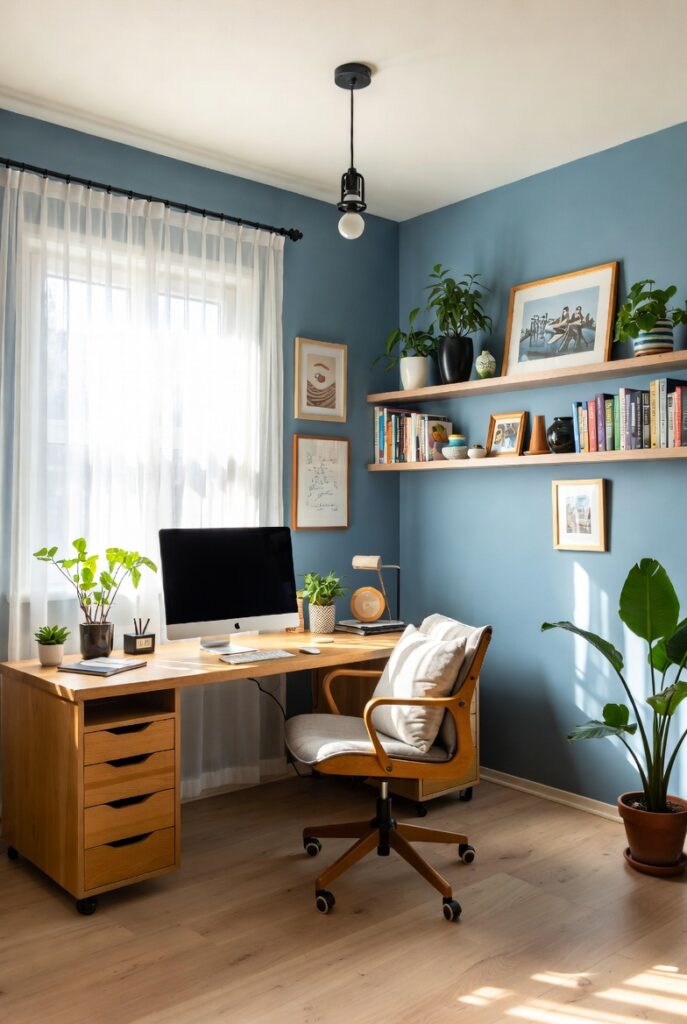 Soft blues and greens are known to improve focus and reduce stress, making them ideal for home offices. Accent colors can be added through decor items like cushions or artwork, but balance is important. A well-chosen color palette enhances both productivity and visual appeal.