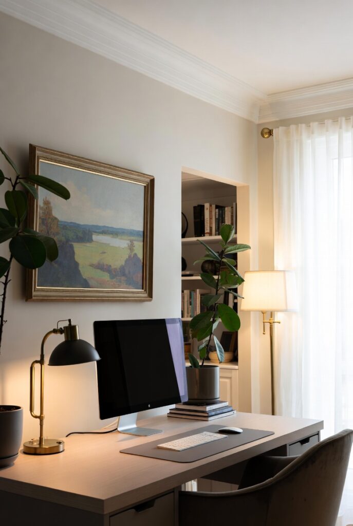 Warm lighting creates a comfortable atmosphere, while neutral lighting supports concentration. Layering different light sources helps reduce eye strain and improves overall comfort. Good lighting makes the workspace more efficient and enjoyable.
