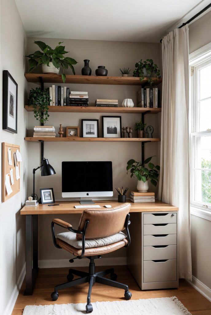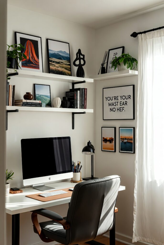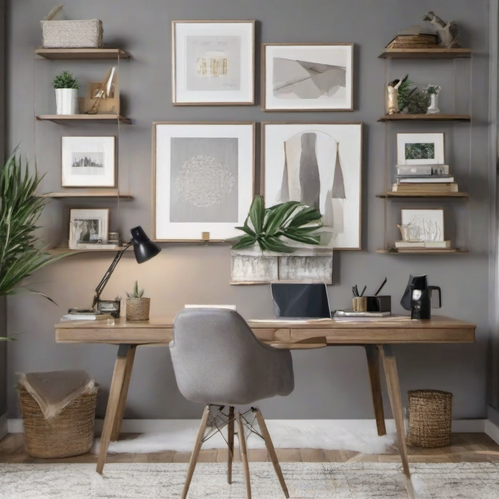 Wall decor adds personality and motivation to a home office. Framed artwork, inspirational quotes, or minimal prints can boost creativity without causing distractions. A small gallery wall can make the space feel curated and intentional.