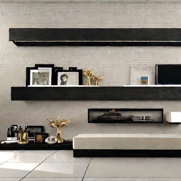 For a sleek and modern luxury vibe, install floating shelves in wood, marble, or lacquered finishes. Keep the styling minimal with a few high-end decorative objects, books, or framed photos. This approach keeps the space clean and uncluttered while still offering opportunities to showcase your personality and taste.
